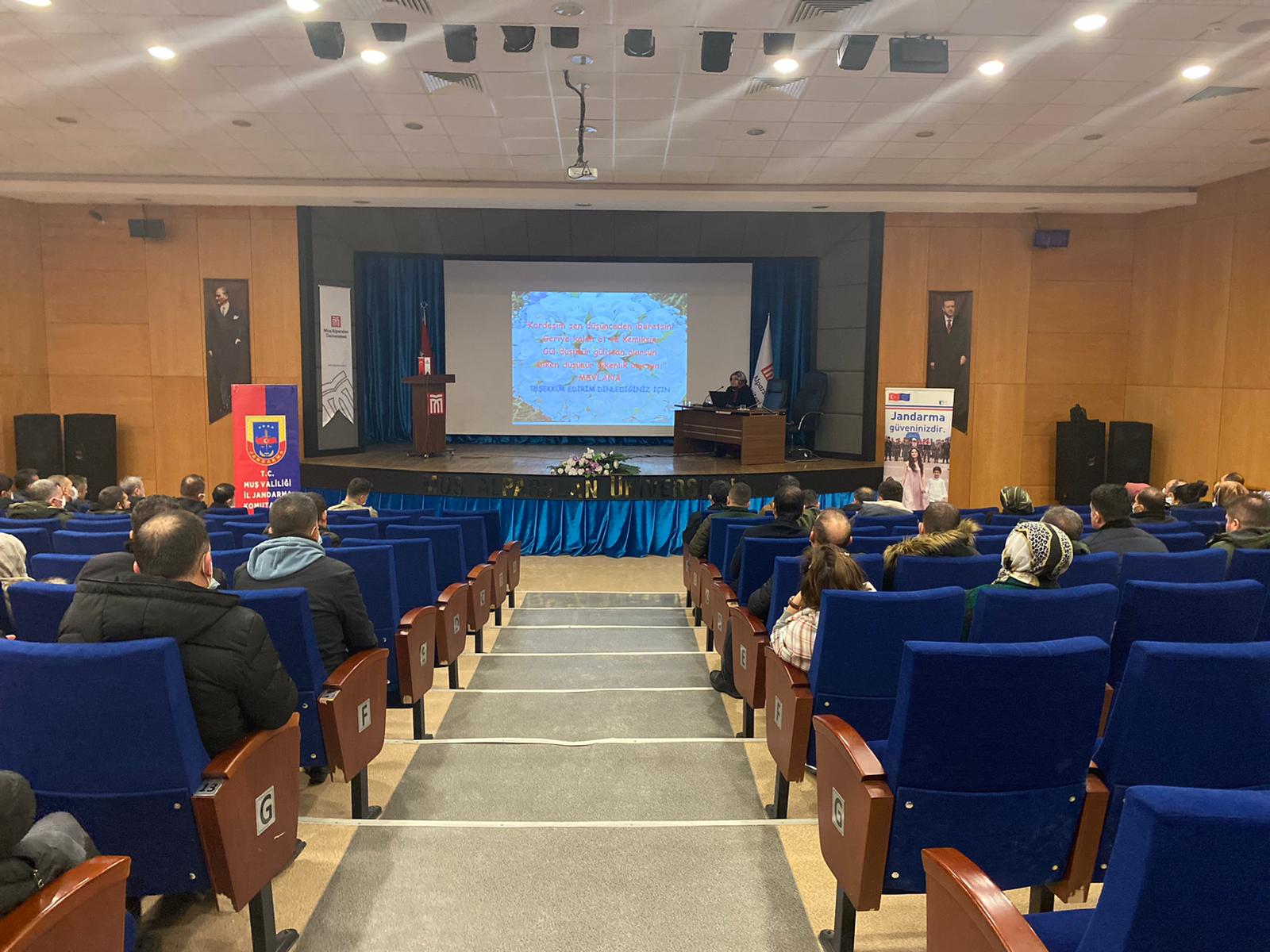 01 Şubat 2022 Salı günü saat 08.30'da Prof. Dr. Sabahattin Zaim Konferans Salonunda üniversitemiz bünyesinde ve yurtta görev yapan güvenlik personeline yönelik İl Jandarma Komutanlığı işbirliği ile hizmetiçi eğitim düzenlenmiştir.